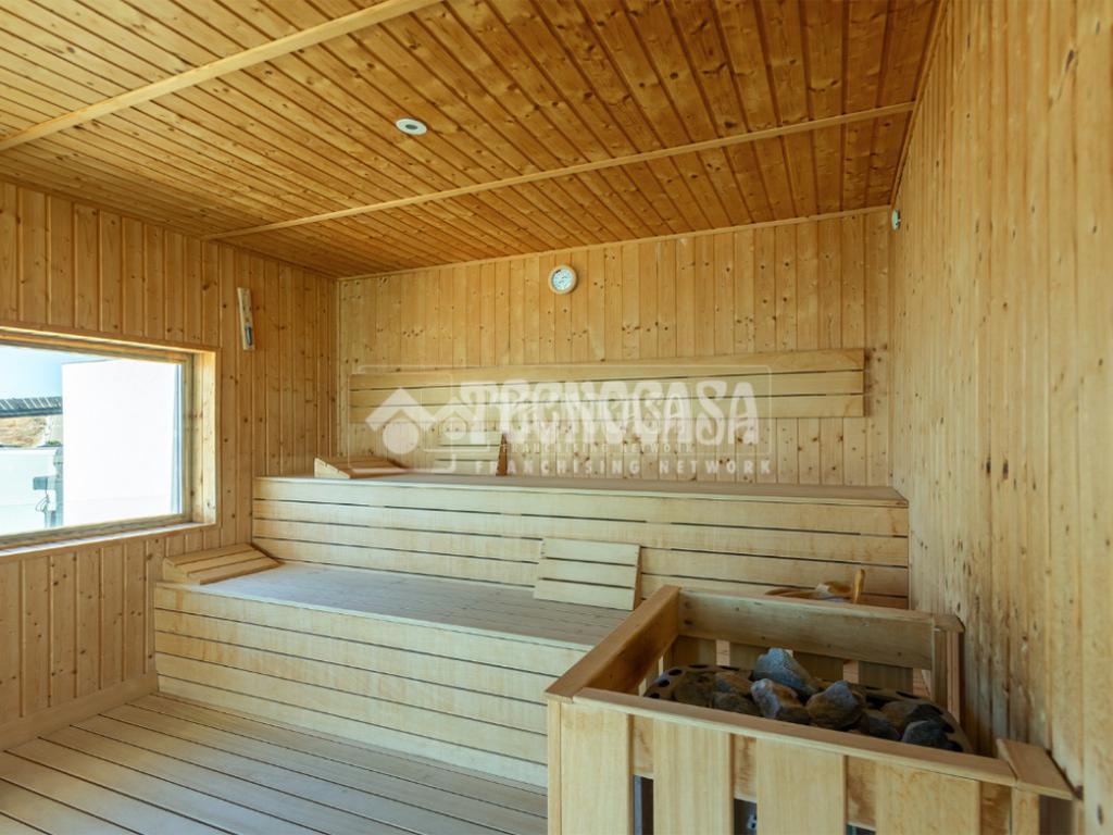 - Zona de spa con sauna y área de relax.