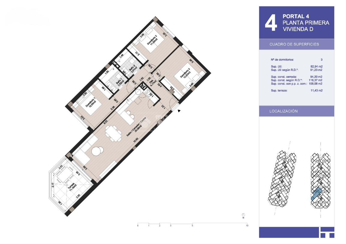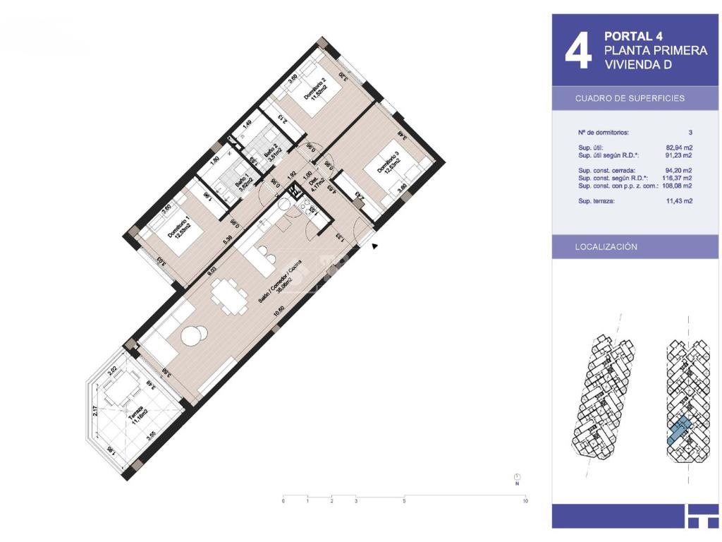 - Superficie construida: 91,23 m² (estimado para el piso en construcción).