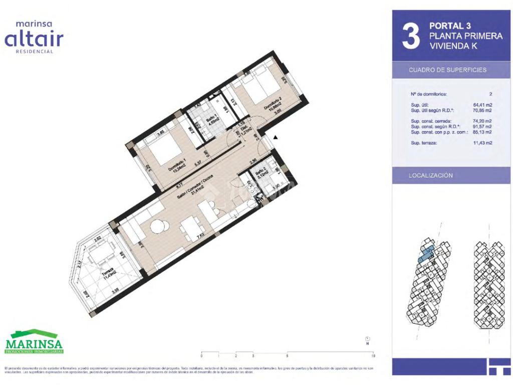 Obra nueva en El Morche - Primera planta de 2 dormitorios en Marinsa Altair
