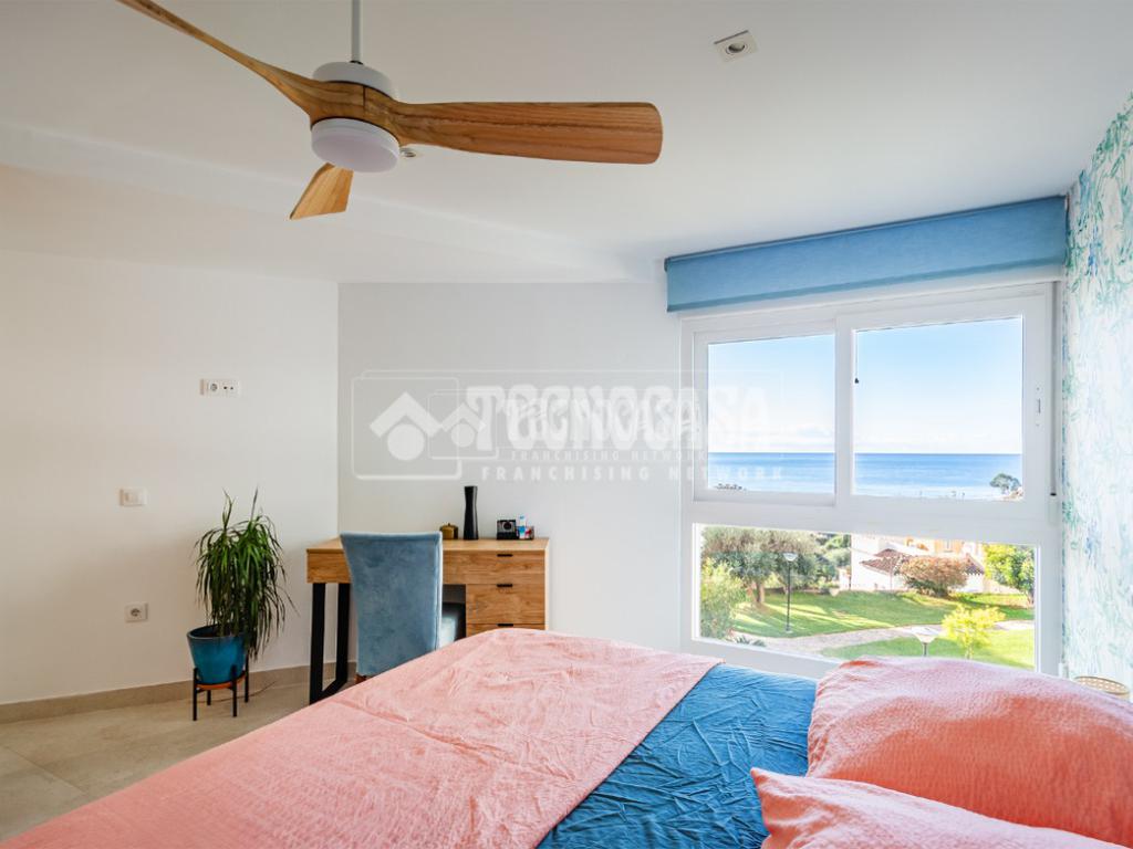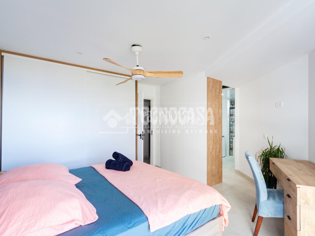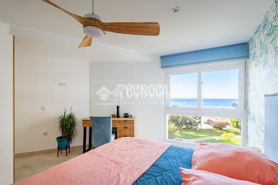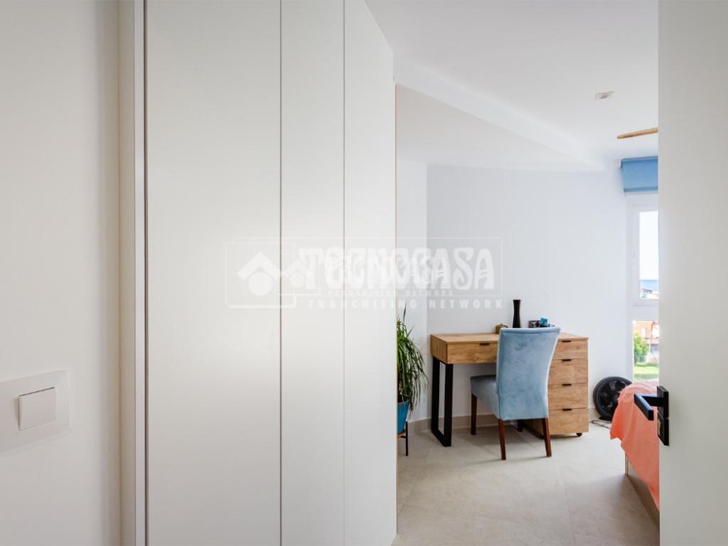 Cuenta con 3 dormitorios amplios y 2 baños completos, uno de ellos en suite en la habitación principal. El dormitorio principal dispone de armario empotrado, gran capacidad de almacenamiento y agradables vistas al mar, aportando un extra de confort y bienestar.