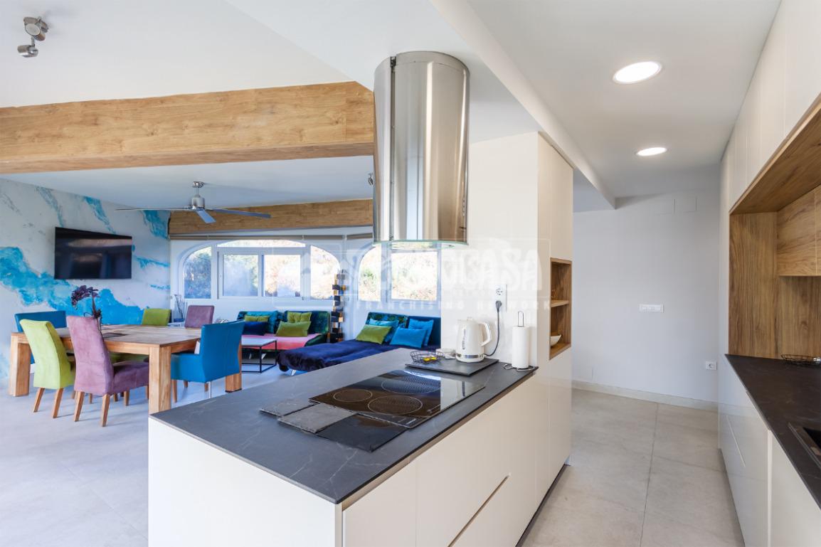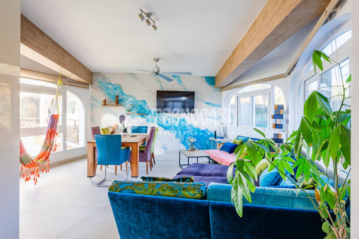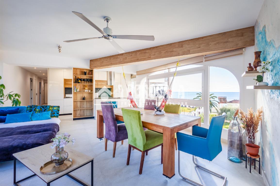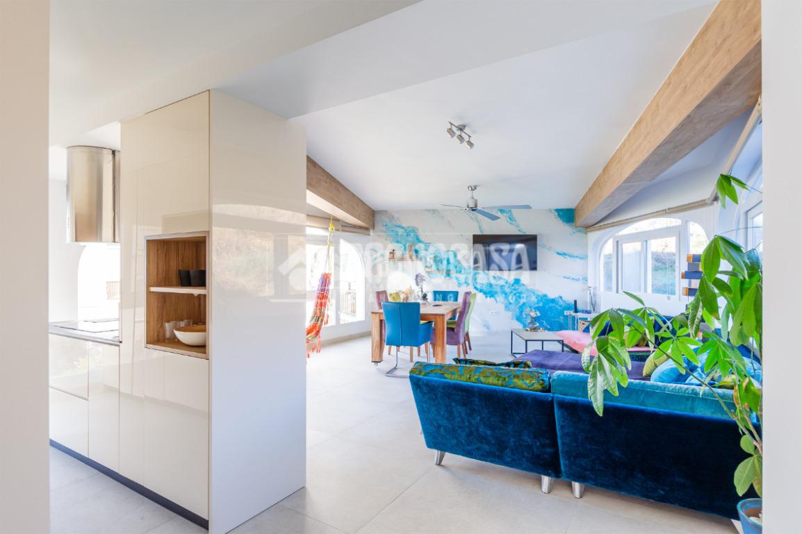 El corazón de la vivienda es su amplio salón-comedor, muy luminoso, con vistas al mar y una moderna cocina americana, creando un espacio abierto y funcional ideal para disfrutar en familia o con amigos.
